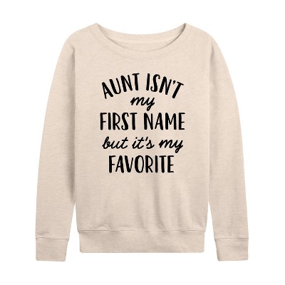 Women's - Instant Message - Aunt Isn't My First Name Lightweight French Terry Wide Neck Long Sleeve Graphic Shirt