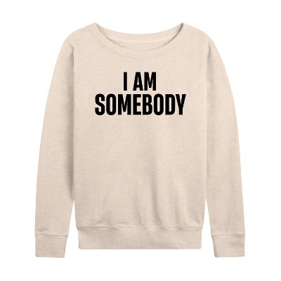Women's - Instant Message - I Am Somebody Lightweight French Terry Wide Neck Long Sleeve Graphic Shirt