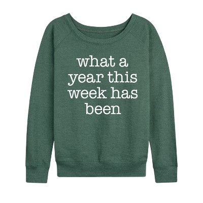 Women's - Instant Message - What A Year This Week Has Been Lightweight French Terry Wide Neck Long Sleeve Graphic Shirt