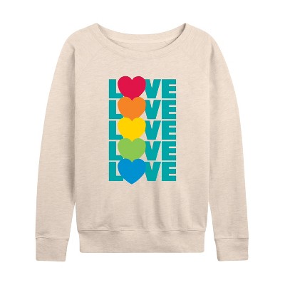 Women's - Instant Message - Love Hearts Stacked Lightweight French Terry Wide Neck Long Sleeve Graphic Shirt