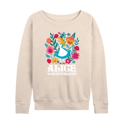 Women's - Alice In Wonderland - Lightweight French Terry Wide Neck Long Sleeve Graphic Shirt
