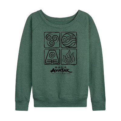 Women's - Avatar - The Last Airbender - Four Elements Lightweight French Terry Wide Neck Long Sleeve Graphic Shirt