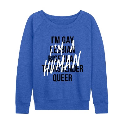Women's - Instant Message - I'm Human LGBTQ Lightweight French Terry Wide Neck Long Sleeve Graphic Shirt