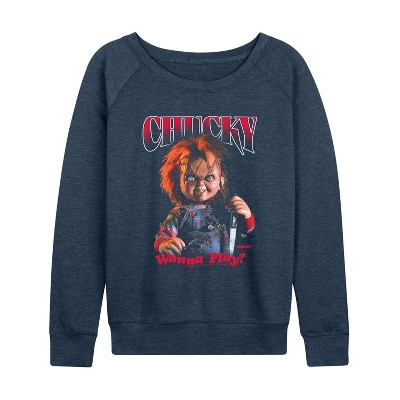 Women's - Chucky - Dark Portrait Lightweight French Terry Wide Neck Long Sleeve Graphic Shirt