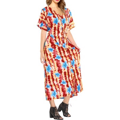 LA LEELA Women's Beachwear Summer Swim Beach Cover Ups for Swimwear Women Loose Flowy Swimsuit Coverups for Women Dress Small-Medium Red, Floral
