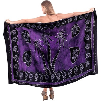 LA LEELA Women's Sarong Wrap Swimwear Cover up Wraps One Size Violet Palm Tree