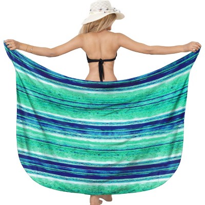 LA LEELA Women's Beachwear Summer Beach Wrap Bikini Wraps Sarong Coverups Bathing suit Swim Cover Up Swimwear Coverups for Women One Size Blue Stripe