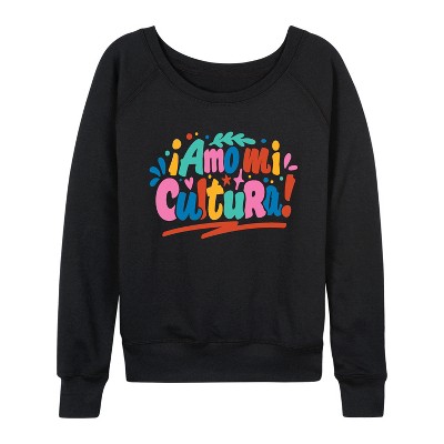 Women's - Instant Message - Amo Mi Cultura Lightweight French Terry Wide Neck Long Sleeve Graphic Shirt