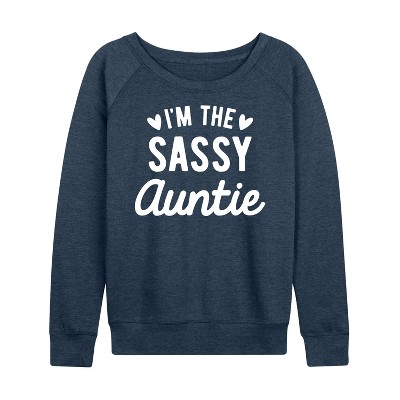 Women's - Instant Message - I'm the Sassy Auntie Lightweight French Terry Wide Neck Long Sleeve Graphic Shirt