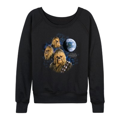 Women's - Star Wars - Chewie Moon Lightweight French Terry Wide Neck Long Sleeve Graphic Shirt