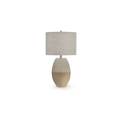 Signature Design by Ashley Lawrock 28" Terracotta Table Lamp with Drum Shade, Antique Blue and Distressed White Finish, Natural Wood Accent, 3-Way