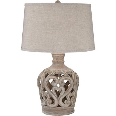 Regency Hill Verducci 28" Tall Scroll Traditional Italian Table Lamp Wood Finish Ceramic Single Beige Shade Living Room Bedroom Bedside Nightstand