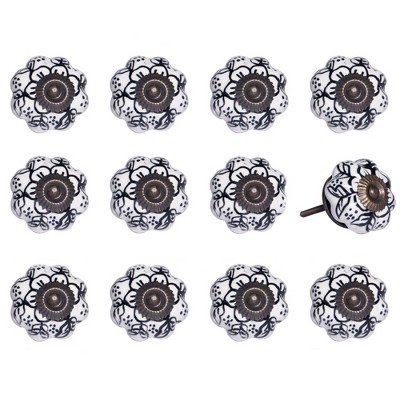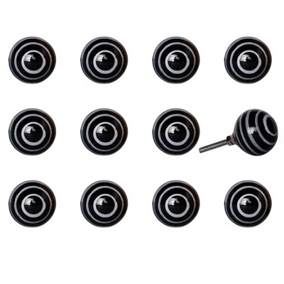 HomeRoots Set of Eight Black And White Ceramic And Metal Drawer Pull Knobs