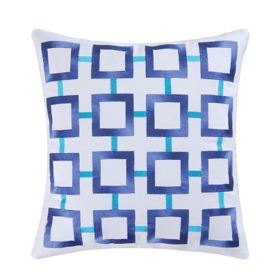 C&F Home Blue Square Embroidered Throw Pillow, 18" x 18"
