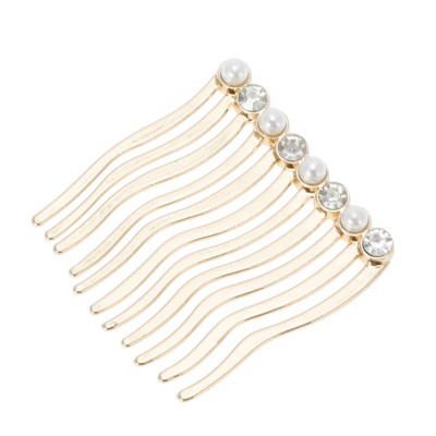 Unique Bargains Women's Rhinestones Pearls Side Comb Gold Tone 1 Pc