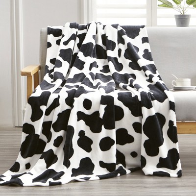 Black Cow Print Blanket, Flannel Throw Blanket, Soft Fluffy Plush Cow Blanket for Bed Sofa Travel All Seasons