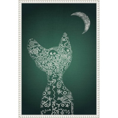 16"x23" My Precious Emerald by Ema Paraschiv: Abstract Cat & Moon Art - Amanti Art