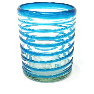 Dos Sueños Mexican Hand Blown Tumblers - Aqua Rim - 10oz - Set of 6