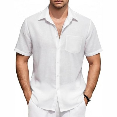 Men's Casual Button Down Shirts Short Sleeve Textured Summer Beach Shirt with Pocke