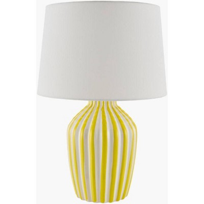 Storied Home Glam Stoneware Lamp with Linen Shade, Metallic Silver Glaze