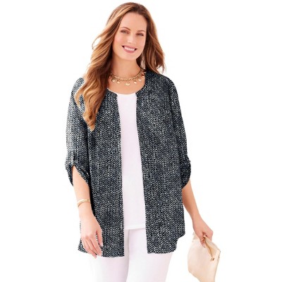 Women's Plus Size Textured Lapel Long Sleeve Soft Casual Button Down Shirts with Pockets - Agnes Orinda