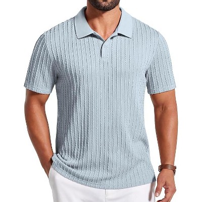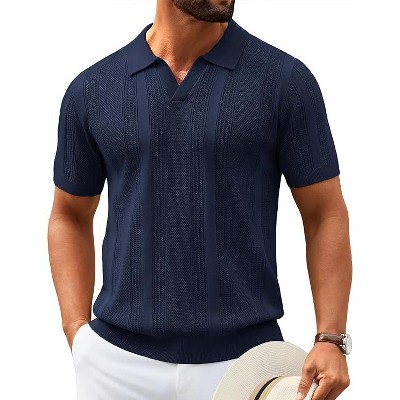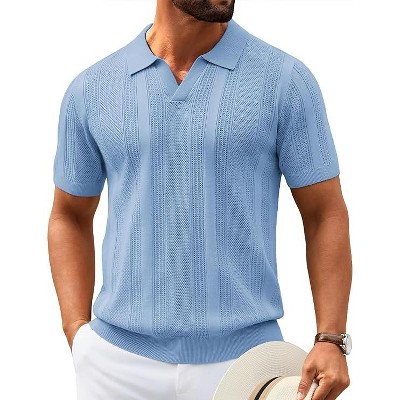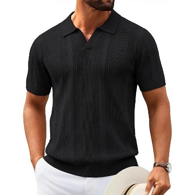 COOFANDY Mens Knit Polo Shirts V Neck Textured Polo Shirts Short Sleeve Breathable Polo Casual Collared T Shirt Fashion Tops