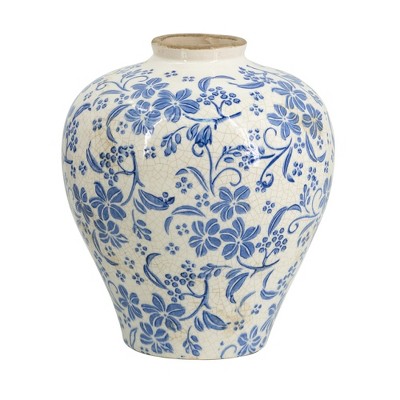 Sagebrook Home 13" Ceramic Vase - Contemporary Blue and White Chinoiserie Design Floral Vase For Decorative Table Accent