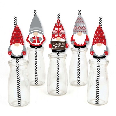 Big Dot of Happiness Christmas Gnomes - Paper Straw Decor - Holiday Party Striped Decorative Straws - Set of 24
