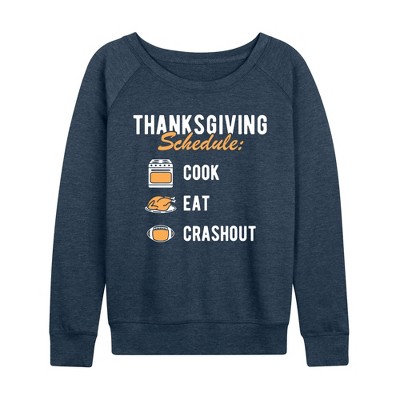Women's - Instant Message - Thankful Plate Lightweight French Terry Wide Neck Long Sleeve Graphic Shirt