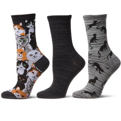 Memoi Cats Montage Bamboo Blend Crew 3 Pair Pack Black 9-11