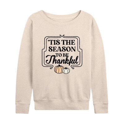 Women's - Instant Message - Thanksgiving Lightweight French Terry Wide Neck Long Sleeve Graphic Shirt
