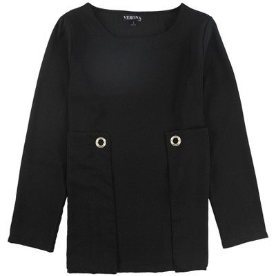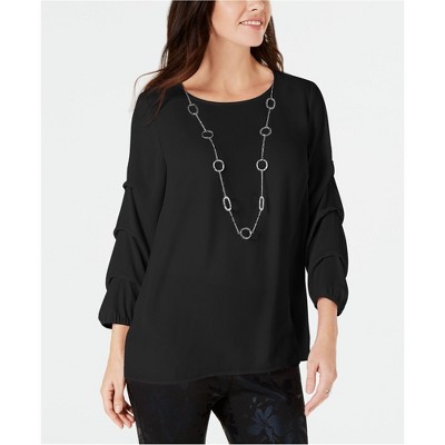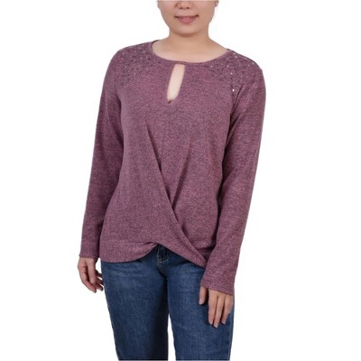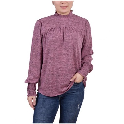 NY Collection Womens Long Sleeve Smocking Details Pullover Blouse