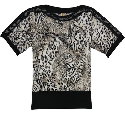 NY Collection Womens Printed Balloon Puff Sleeve Dolman Blouse