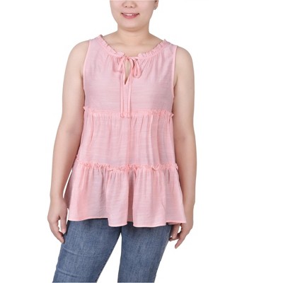 NY Collection Womens Tiered Sleeveless Blouse Top, pink, PXL
