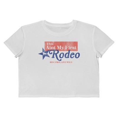 Social Collective Women's Ain'T My First Americana 4Th Of July Short Sleeve Graphic Cotton Cropped Loose T-shirt - Bright White M