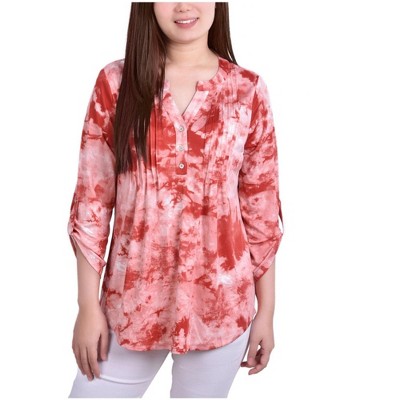 NY Collection Womens Roll Tab Sleeve Pullover Blouse