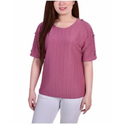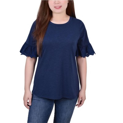NY Collection Womens Lace Cuff Pullover Blouse