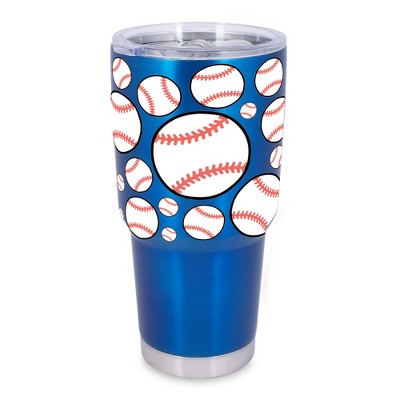 100 North 30 Ounce Stainless Steel On the Go Travel Tumbler With Push Top Lid, Baseball Blue
