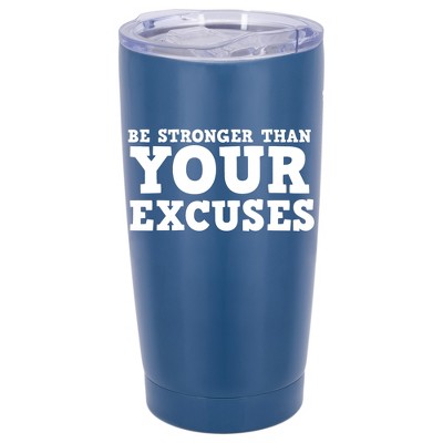 100 North 20 Ounce Stainless Steel On the Go Travel Tumbler With Push Top Lid, Be Stronger Than Your Excuses Blue