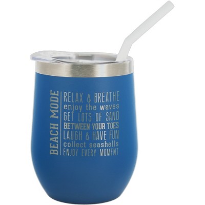 Pavilion Gift Company - Beach Mode - 12 oz Stemless Travel Tumbler with Straw - Portable Drinkware
