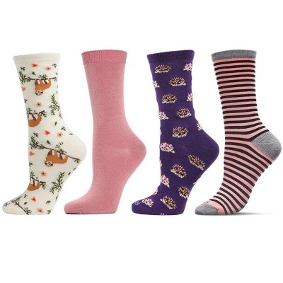MeMoi Womens 4 Pair Pack Rayon Novelty Crew Socks