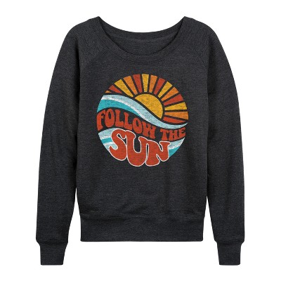 Women's - Instant Message - Follow the Sun Sunburst Lightweight French Terry Wide Neck Long Sleeve Graphic Shirt