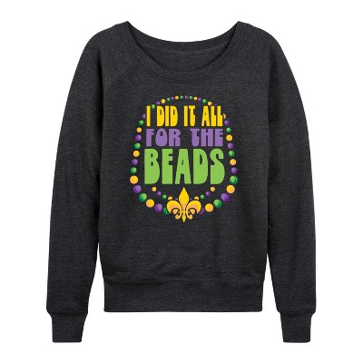 Women's - Instant Message - I Did It All For The Beads Lightweight French Terry Wide Neck Long Sleeve Graphic Shirt