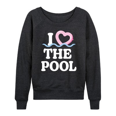 Women's - Instant Message - I Heart The Pool Floatie Lightweight French Terry Wide Neck Long Sleeve Graphic Shirt