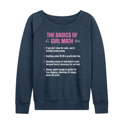 Women's - Instant Message - The Basics Of Girl Math Lightweight French Terry Wide Neck Long Sleeve Graphic Shirt