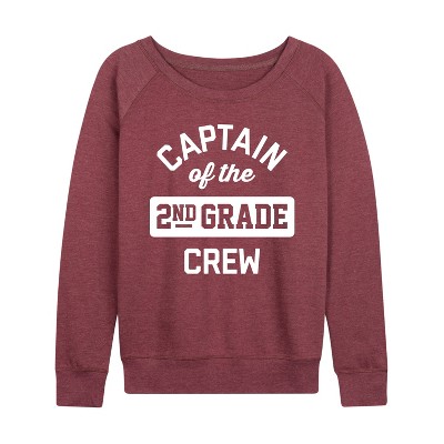 Women's - Instant Message - Captain Of The 2Nd Crew Lightweight French Terry Wide Neck Long Sleeve Graphic Shirt