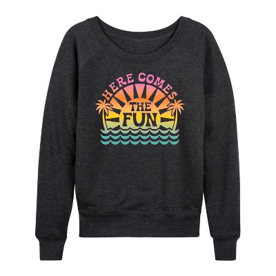Women's - Instant Message - Here Comes The Fun Lightweight French Terry Wide Neck Long Sleeve Graphic Shirt
