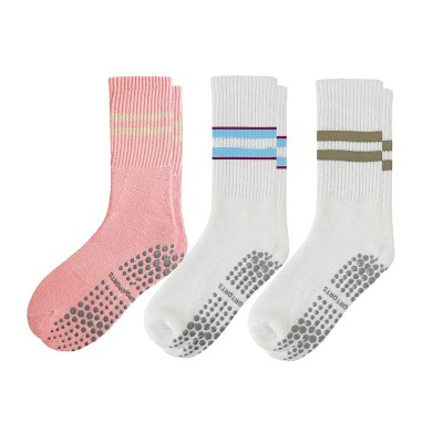 Anna-Kaci Women's Crew Socks 3-Pack with Athletic Stripe Design and Non-Slip Grips