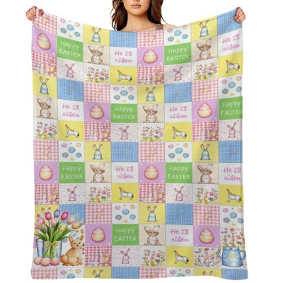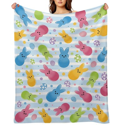 Easter Peeps Bunny Flannel Blanket, Cute Rabbit Easter Eggs Throw Blanket Gifts, Colorful Polka Dot Spring Soft Blanket 30x40 inches