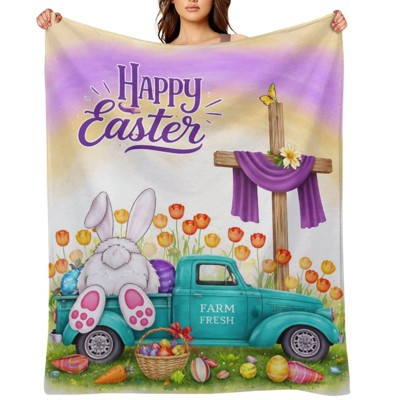Easter Blanket, Easter Decor, Bunny Truck Flannel Throw Blanket, Farmhouse Decorations for Home 50x60 inches